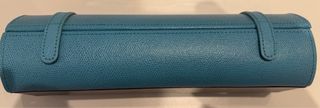 Elegante estuche para guardar hasta 5 relojes. Su diseño cilíndrico y material texturizado lo hacen un accesorio práctico y sofisticado. - Capacidad para 5 relojes. - Cierre seguro con correas. - Material con textura.