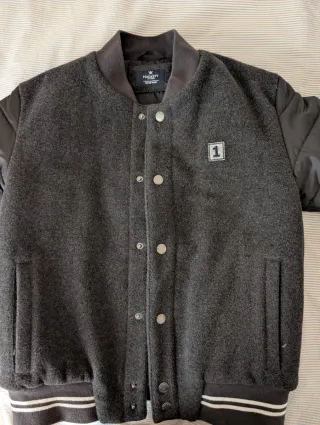 Chaqueta estilo bomber de la marca Hackett para niño. - Cuerpo principal de tejido gris jaspeado. - Mangas de material negro. - Cierre de botones a presión. - Puños y cuello de canalé. - Detalle de parche con el número 1 en el pecho.