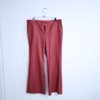 Pantalones de vestir con un diseño a rayas verticales. - Corte acampanado. - Cintura con trabillas. - Cierre de cremallera y botón.