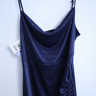 Vestido de fiesta azul con brillos