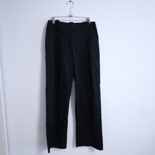 Pantalón de vestir de color negro. - Corte recto. - Cintura alta. - Cierre de cremallera y botón.