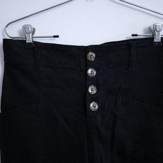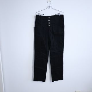 Pantalón negro de talle alto con cierre de botones. - Diseño de talle alto. - Cierre frontal con botones.
