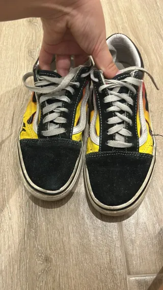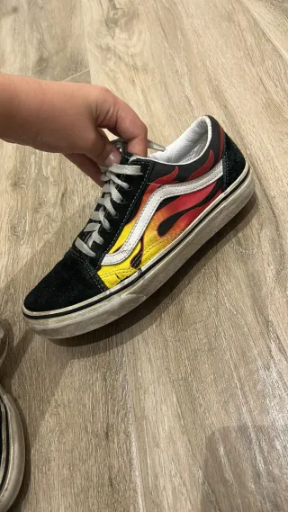 Zapatillas Vans Old Skool con un llamativo diseño de llamas en colores rojo y amarillo. - Diseño lateral de llamas. - Cierre con cordones.