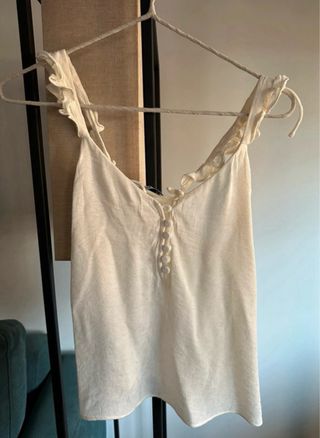 Top de Mango Color blanco roto Talla XS Tiras onduladas como se muestra en la foto, botones delanteros. ¡En perfecto estado, SIN USO!