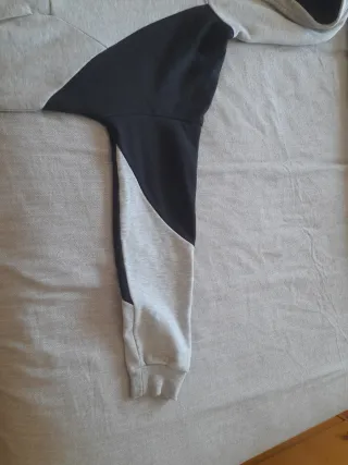 Sudadera gris y negra con capucha,talla 10 a 12 añ