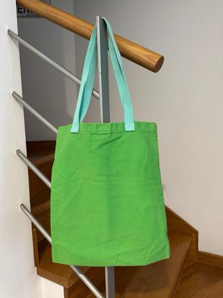 Bolso de tela de la marca Roxy con un diseño llamativo. - Color verde. - Estampado frontal con flores y texto. - Asas de tela resistentes. - 100% algodón