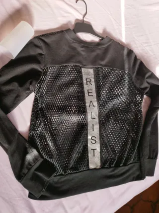 Chaqueta deportiva ó cassual de mujer con diseño moderno y detalles perforados. Lleva una banda plateada vertical en la espalda con la palabra Realist. El resto del cuerpo va confeccionado en tejido de maya. Es muy bonita, original y diferente. - Cremallera frontal. - Puños y bajo elásticos. - Cuello redondo. - Como nueva, perfecto estado, sin ningún uso. - Talla M/38. **Hago lotes en un sólo envío, consulta mi perfil.