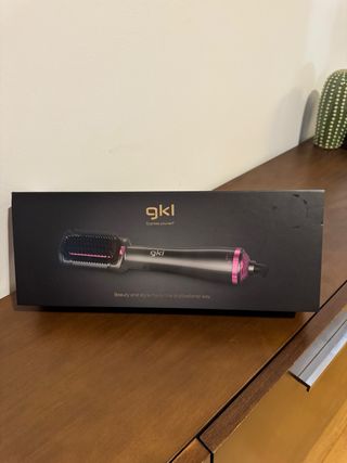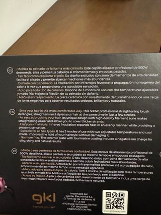 Cepillo alisador GKL con un diseño moderno en negro y detalles en rosa. Perfecto para estilizar tu cabello. - Mango ergonómico para un agarre cómodo. - Cerdas diseñadas para un alisado eficiente.