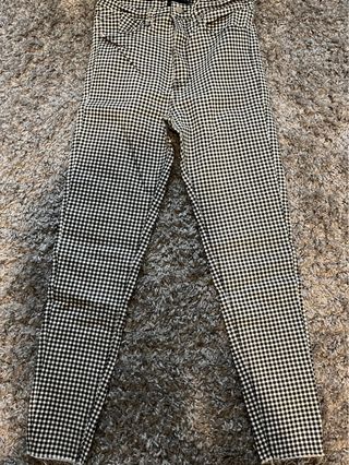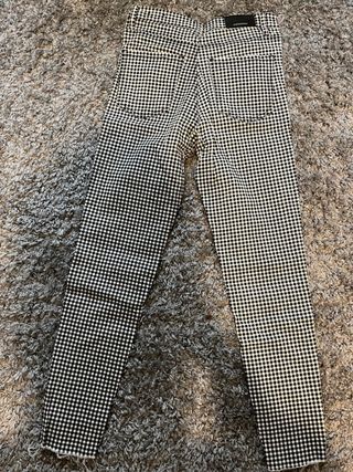 Pantalón pitillo con estampado de cuadros vichy en negro y blanco. Corte ajustado. - Diseño de cuadros. - Cintura alta.