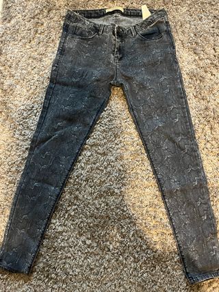 Pantalón vaquero pitillo estampado