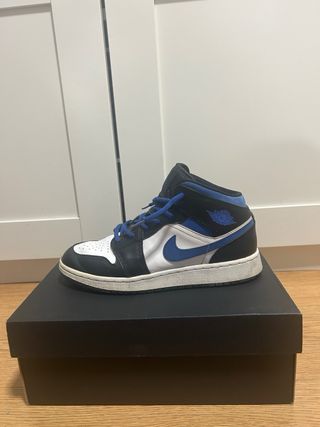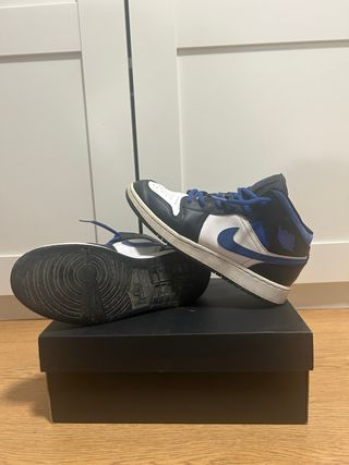 Zapatillas Jordan 1 Mid con un diseño clásico y deportivo. - Combinación de colores azul y blanco. - Detalle del logo Swoosh en el lateral. -Caja y zapatillas en perfecto estado