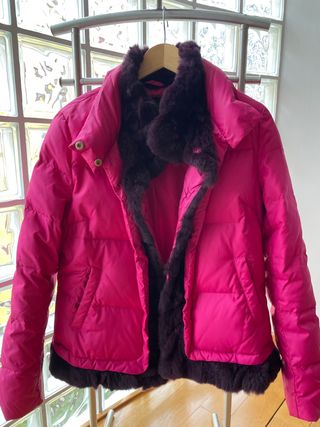 Elegante plumífero con un vibrante color rosa y detalles en marrón. - Diseño acolchado. - Cuello y puños con acabado de pelo. - Bolsillos laterales.