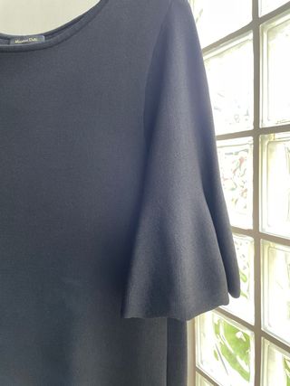 Vestido de punto de Massimo Dutti en color negro. Su diseño es elegante y versátil. - Manga corta acampanada.