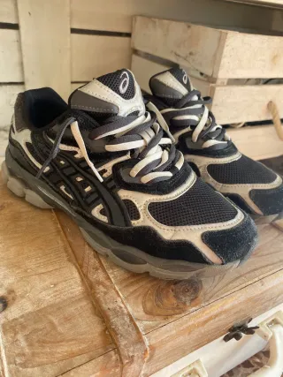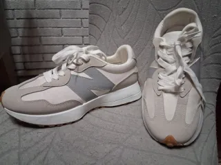 Zapatillas de estilo casual con un diseño moderno. - Combinación de colores beige y gris. - Detalle de logo en forma de N.