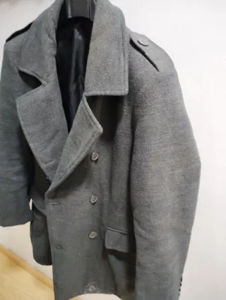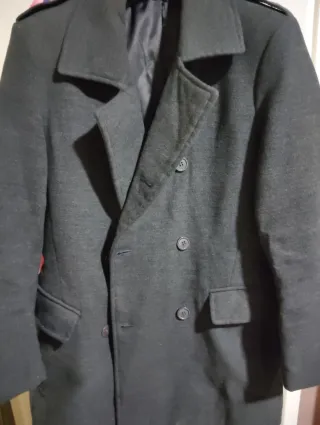 Abrigo de paño de color negro Presenta un diseño clásico con solapas y cierre de botones. - Dos bolsillos frontales. - Forro interior. - Botones a contraste.