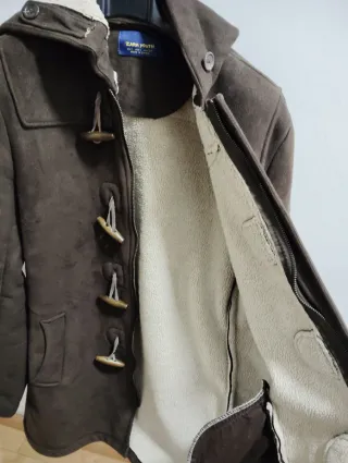 Abrigo tipo gamulan en color marrón. - Cierre con botones de madera y también cierre. - Todo el abrigo forrado en corderito. - Bolsillos delanteros.