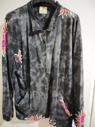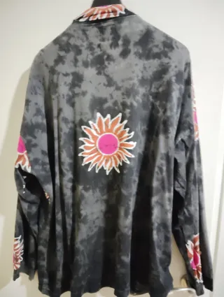 Chaqueta con estampado tie-dye y detalles florales. - Diseño con cuello - Cierre de botones - Bolsillos delanteros - Mangas largas