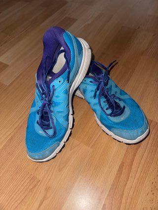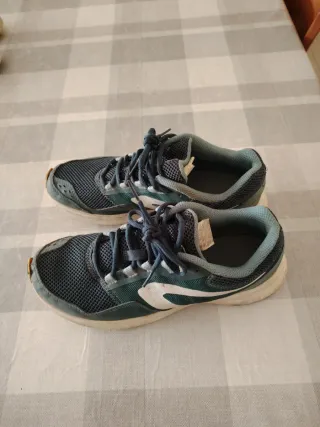 Zapatillas deportivas de Decathlon en tonos azules y verdes. Perfectas para el día a día o para hacer deporte. - Diseño moderno y cómodo. - Cierre con cordones.