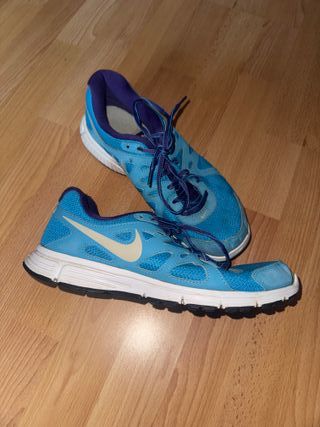 Zapatillas deportivas Nike en llamativos tonos azules y morados. Perfectas para tus actividades. - Diseño deportivo. - Cordones a juego.