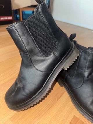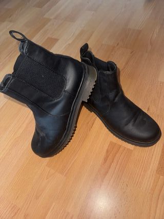 Botines negros estilo Chelsea, perfectos para el día a día. - Diseño elástico en los laterales. - Tirador trasero para facilitar su puesta. - Suela gruesa y resistente.