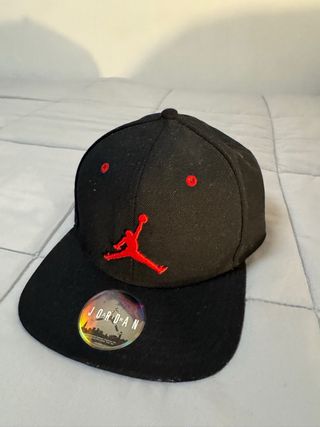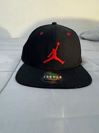 Gorra de la marca Jordan con el icónico logo. - Color principal: negro. - Logo bordado en color rojo. - Diseño clásico de visera plana.