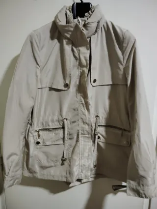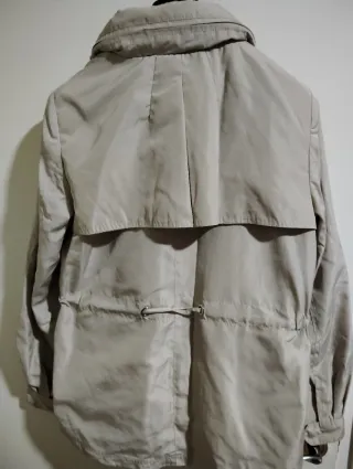 Gabardina de estilo casual en color beige. - Diseño con cuello alto. - Cierre de cremallera. - Bolsillos frontales con cremallera. - Cordón ajustable en la cintura.