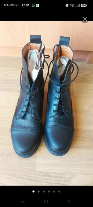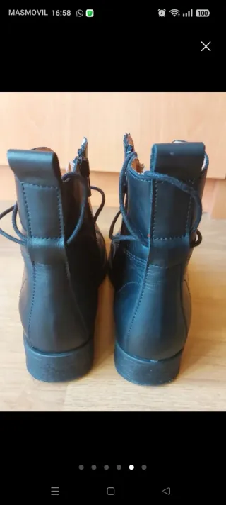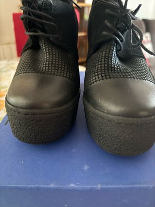 Botines de piel con un diseño moderno y versátil. - Cierre principal con cordones. - Cremallera lateral para facilitar su uso. - Detalle de costuras en la puntera. - Muy cómodos.