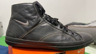 Botas altas de piel negras de la marca Nike. - Diseño moderno y versátil. - Cierre con cordones. - Detalle de costuras. - Logo de Nike en el lateral.