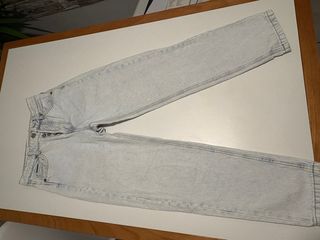 Pantalón vaquero de corte recto y color claro. Un básico para cualquier armario. - Tejido denim. - Cierre de botones. - tiene una pequeña mancha delante.