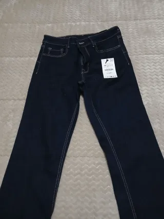 Vaqueros rectos de tiro medio. - Corte recto. - Tiro medio. - Diseño clásico. - Talla 42, pero se puede llevar como oversize, como aparece en las fotos (mido 1,70cm para referencia de largo)