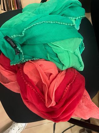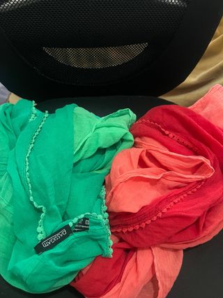 De diferentes tonos en color caldera y naranja, beige y de estampador burdeos con negro y tonos azules. Son de tiendas locales. Parecidos a los de las tiendas de Zara, parfois. Precio es del lote. Uno de ellos con Etiqueta y todo, dos de ellos sin uso ninguno, y los otros muy poco uso.