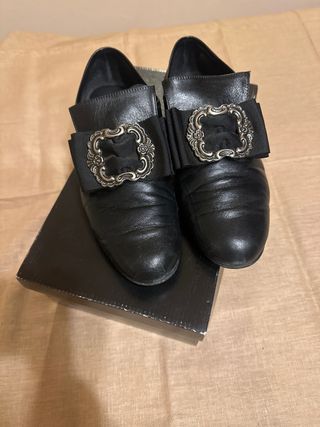 Zapatos negros de fallero con un bonito detalle. Talla 38 - Adorno de lazo con hebilla. - Diseño elegante.