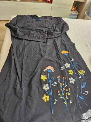 Vestido de manga larga con un estampado floral y botánico en la parte delantera. El diseño incluye elementos como frascos y plantas. - Estampado detallado. - Manga larga. Del azul dispongo uno de talla M y L. Del negro solo uno en talla L