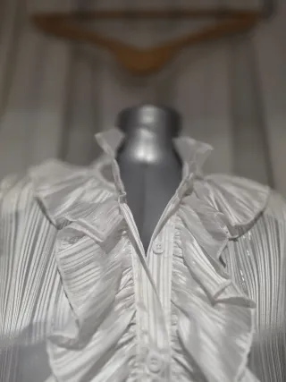 Blusa blanca con volantes y hilo brillante