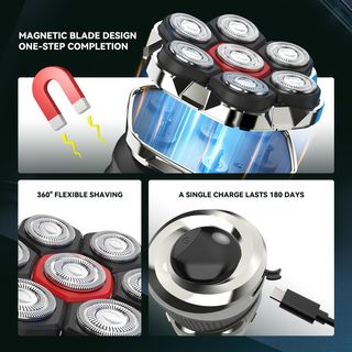 Producto nuevo, sin desprecintar. No envío. Afeitadora eléctrica portátil para cabeza y rostro diseñada para hombres que buscan un afeitado rápido, cómodo y uniforme en seco o húmedo. 🔵 Sistema 7D flotante: cabezales magnéticos bidireccionales que se adaptan al contorno del cráneo y la cara para un afeitado apurado y suave 💧 Impermeable IPX7: uso en seco, con espuma o bajo la ducha, limpieza directa bajo el grifo 🔋 Carga USB-C rápida: 2 h de carga para hasta 100 min de uso continuo 📺 Pantalla LED: muestra nivel de batería y estado de uso ✈️ Bloqueo de viaje: evita encendidos accidentales 🎁 Uso diario. Ideal regalo.