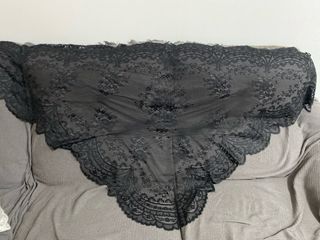 Elegante mantilla de encaje negro, perfecta para trajes regionales.