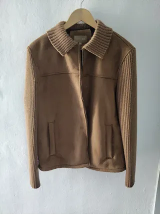 Chaqueta marrón con cuello de canalé