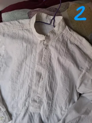 Camisa blanca para niño, ideal para trajes de fallero. Presenta un diseño clásico con detalles. - Manga larga. - Cuello con puntilla. - Puño abotonado. La camisa numero 1 - 10€ La camisa numero 2 - 20€