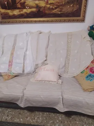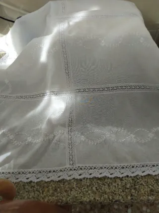 Manteleta huertana encaje beige y blanco