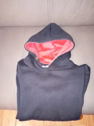 Sudadera con capucha negra y forro rojo