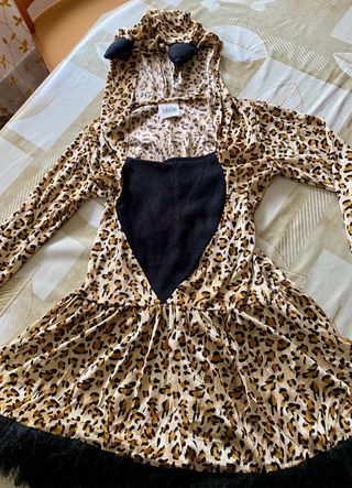 Disfraz de leopardo para mujer, talla M/L. Incluye capucha con orejas y cola. - Diseño de estampado de leopardo. - Detalle de pelo sintético en el bajo. Usado solo una vez, esta como nuevo.