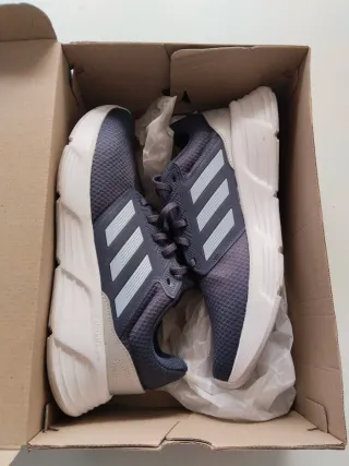 Zapatillas deportivas Adidas en tonos azules grises y blancos. Perfectas para el día a día. - Diseño moderno. - Cierre de cordones. - Suela cómoda. Me las regalaron pero no me quedan.