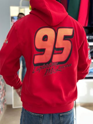 Sudadera con el diseño de Rayo McQueen de la película Cars. - Número 95 en la espalda. - Nombre Lightning McQueen debajo del número. - Parches decorativos en la manga izquierda.
