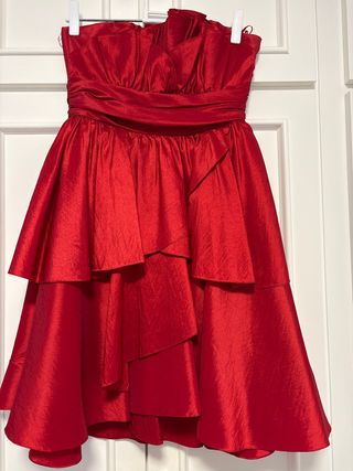 Vestido de fiesta rojo con volantes