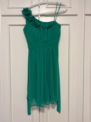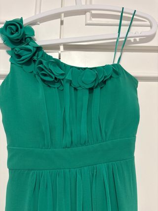 Vestido verde fiesta flores un hombro