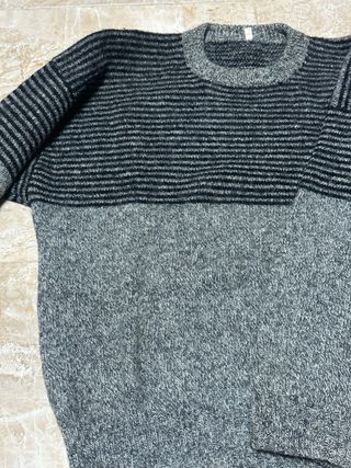Jersey de punto con cuello redondo y un diseño de rayas en la parte superior. - Diseño de rayas horizontales. - Tejido de punto. Al ser artículo vintage, yo lo veo talla XL o XXL, puedes preguntar por medidas si te interesa! 🙋♀️
