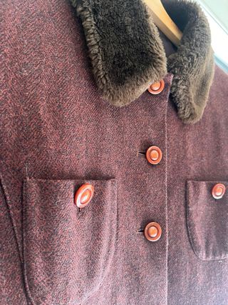 Abrigo de mujer con un diseño texturizado y cierre de botones. - Tejido suave y cálido. - Cuello alto. - Mangas largas.