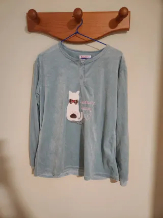 Camiseta de manga larga con un adorable diseño de gatito. - Tejido suave y confortable. - Detalle de gatito con pajarita y corazón. - Cuello redondo con botones.