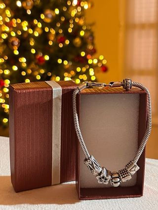 Pulsera de plata con cinco dijes, estilo Pandora. -sin usar - Diseño unisex. - Cierre seguro. -preciosa y versátil -envío en caja regalo