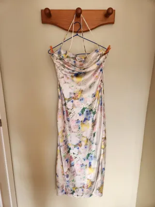 Vestido de tirantes con un estampado floral vibrante y delicado. Su diseño fluido lo hace ideal para ocasiones especiales. - Tirantes finos. - Escote drapeado. - Largo midi.